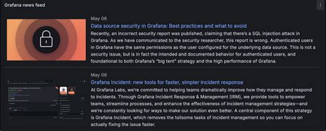 At its core, the Oscios Grafana SCSC News Panel is a plugin that integrates seamlessly with Grafana, a popular open-source data visualization and monitoring tool. The primary function of this panel is to aggregate and display news feeds related to Security, Compliance, Safety, and Cybersecurity. Think of it as your personalized news aggregator, tailored specifically to keep you informed about the issues that matter most to your organization. By pulling in data from various sources, such as RSS feeds, APIs, and custom data inputs, it presents a consolidated view of the latest happenings directly within your Grafana dashboards.