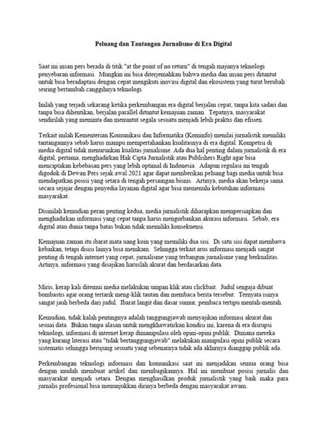 Oke, guys, kita udah ngomongin peran seorang reporter dan etika mereka. Sekarang, mari kita bahas tantangan yang dihadapi para reporter di era digital ini. Duh, zaman sekarang tuh beda banget sama dulu, ya? Dulu, reporter cuma bersaing sama media mainstream lainnya. Sekarang? Saingannya banyak banget! Ada blogger , vlogger , akun-akun gosip di media sosial, bahkan masyarakat biasa yang bisa langsung upload video kejadian. Ini bikin persaingan jadi makin ketat. Siapa yang paling cepat, seringkali jadi yang paling banyak dibaca atau ditonton, meskipun kadang keakuratannya dipertanyakan. Tantangan pertama yang paling menonjol adalah kecepatan vs. akurasi. Di era real-time ini, audiens pengennya berita yang instant . Akibatnya, reporter seringkali tertekan untuk segera merilis berita, bahkan sebelum semua fakta terkumpul lengkap. Ini nih, yang bisa berujung pada kesalahan atau ketidakakuratan. Peran seorang reporter sekarang dituntut untuk bisa bergerak cepat tapi tetap hati-hati. Kemampuan verifikasi jadi makin penting. Nggak cuma itu, ada juga masalah hoax dan disinformasi yang makin merajalela. Dengan mudahnya penyebaran informasi di internet, berita bohong bisa menyebar kayak api liar. Reporter punya tugas berat untuk melawan arus ini. Mereka harus ekstra teliti dalam memverifikasi setiap informasi sebelum disebarluaskan. Ini butuh waktu, tenaga, dan sumber daya yang nggak sedikit. Belum lagi, kadang reporter harus berhadapan dengan buzzer atau akun-akun yang sengaja menyebarkan berita palsu untuk tujuan tertentu. Peran seorang reporter di sini adalah menjadi benteng terakhir kepercayaan publik terhadap informasi. Tantangan lainnya adalah soal keamanan . Terutama buat reporter yang meliput isu-isu sensitif atau konflik. Ancaman fisik, intimidasi, sampai serangan siber itu nyata. Di beberapa negara, reporter bahkan harus menghadapi risiko nyawa demi menyampaikan kebenaran. Ini menunjukkan betapa beratnya peran seorang reporter yang terkadang harus mempertaruhkan keselamatan diri demi kepentingan publik. Di ranah digital, ancaman bisa datang dalam bentuk doxing (penyebaran informasi pribadi), peretasan akun, atau kampanye hitam yang bertujuan mendiskreditkan mereka. Selain itu, model bisnis media yang berubah juga jadi tantangan. Banyak media yang kesulitan finansial, yang akhirnya bisa mempengaruhi independensi pemberitaan. Reporter kadang harus berjuang untuk mendapatkan sumber daya yang memadai untuk melakukan investigasi mendalam. Peran seorang reporter juga harus beradaptasi dengan berbagai platform. Mereka nggak cuma nulis, tapi juga harus bisa bikin video pendek, podcast, infografis, atau bahkan mempromosikan karyanya di media sosial. Kemampuan multimedia dan literasi digital jadi syarat wajib. Fleksibilitas dan kemauan untuk terus belajar itu kunci. Jadi, meskipun tantangannya berat, peran seorang reporter di era digital ini justru makin vital. Mereka adalah penjaga gerbang informasi yang kredibel di tengah lautan data yang kadang membingungkan dan menyesatkan.