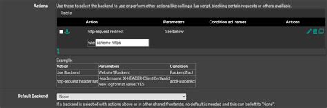 • In the frontend configuration, listen on port 80 (HTTP) and set the action to redirect to HTTPS.