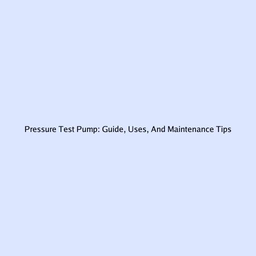 Pressure Test Pump: Guide, Uses, And Maintenance Tips