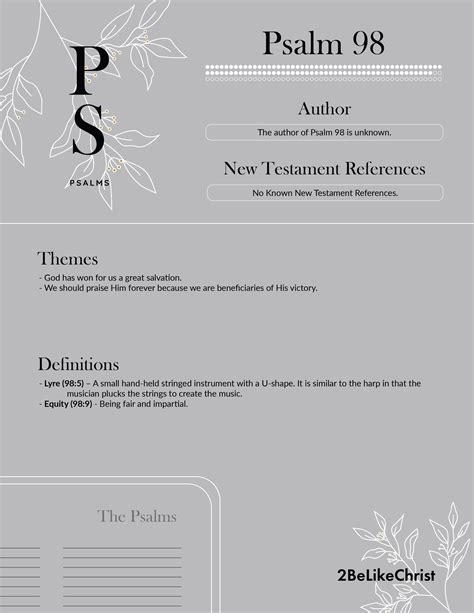 Hey guys, let’s dive into Psalms 98 , a truly awesome chapter that’s packed with praise and a powerful message of God’s salvation and justice. If you’re looking for a biblical text that will lift your spirits and remind you of God’s mighty deeds, you’ve come to the right place. This psalm isn’t just a beautiful piece of poetry; it’s a declaration of God’s faithfulness, His triumph over His enemies, and His ultimate reign over the entire earth. It calls for a universal celebration, urging everyone – from creation itself to all humanity – to sing a new song of joy and thanksgiving. We’ll break down each verse, explore its rich symbolism, and understand why it resonates so deeply across different eras and cultures. Whether you’re a seasoned Bible scholar or just curious about this specific psalm, get ready to be inspired!