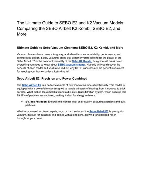 What makes SEBO special? SEBO vacuums are built to last. They use high-quality materials and construction techniques to ensure that their products can withstand years of use. They are also known for their powerful suction and effective filtration systems, which make them ideal for people with allergies or sensitivities. Many SEBO vacuums also have features like automatic height adjustment, brush roll shut-off, and integrated tools, making them versatile for different cleaning tasks.