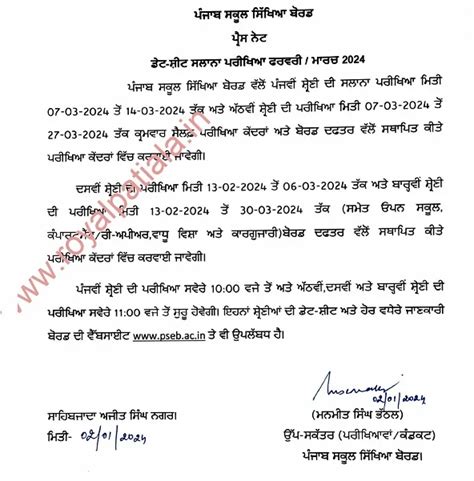 Let’s get down to the nitty-gritty: exam dates . The PSEB 10th exams usually commence in March and conclude by the end of the same month or early April. However , it’s absolutely critical to check the official PSEB website for the most accurate and up-to-date dates. Dates can shift slightly year to year due to various factors, so relying on unofficial information can lead to major confusion. Think of the official notification as your sacred text for exam timings. Once you have the schedule, mark your calendar, create a study timetable that aligns with your exam dates, and allocate sufficient time for each subject. Don’t leave subjects for the last minute. A good timetable should include time for learning new topics, revising old ones, practicing sample papers, and importantly, taking breaks. Ensure your timetable is realistic and flexible enough to accommodate unforeseen circumstances. For subjects with practical components, check if the practical exams are scheduled before or after the theory exams and plan accordingly. Understanding the duration of each paper is also important for time management during the exam. Some papers might be longer than others, requiring you to pace yourself differently. Remember, guys, a well-structured schedule is your roadmap to success. It helps you stay organized, reduces last-minute stress, and ensures that you cover all the necessary topics. So, head over to the PSEB’s official portal, find that notification, and start planning your attack! Early preparation and sticking to a schedule are your best friends here.