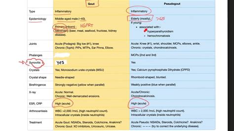 - Treatment: Gout treatment focuses on lowering uric acid levels, while pseudogout treatment focuses on managing pain and inflammation.