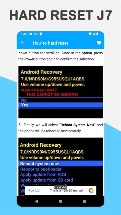 In the Recovery menu, use the Volume buttons to scroll down until you highlight the option that says “Wipe data/factory reset” . This is the one that will erase everything on your phone. Once it’s highlighted, press the Power button to select it. You’ll likely be prompted with a confirmation screen asking if you’re sure you want to wipe all user data. Again, use the Volume buttons to highlight “Yes” or “Factory data reset” (the wording can differ slightly) and press the Power button to confirm. The phone will then begin the reset process. You’ll see a message at the bottom of the screen indicating the progress. This can take a few minutes. Once the wipe is complete, you’ll be returned to the main Recovery menu. At this point, you should see an option like “Reboot system now” highlighted. Select this option by pressing the Power button . Your Samsung J7 will then reboot, and it will take a bit longer than usual for the first startup because it’s setting itself up as if it were brand new. You’ll be greeted with the initial setup screen, just like when you first got your phone. Remember, guys, this process will erase all your data , so this is strictly for when you’ve forgotten your password or pattern and have no other way to access your phone. Make sure you’ve tried other methods or considered data recovery if the information is extremely important before proceeding!