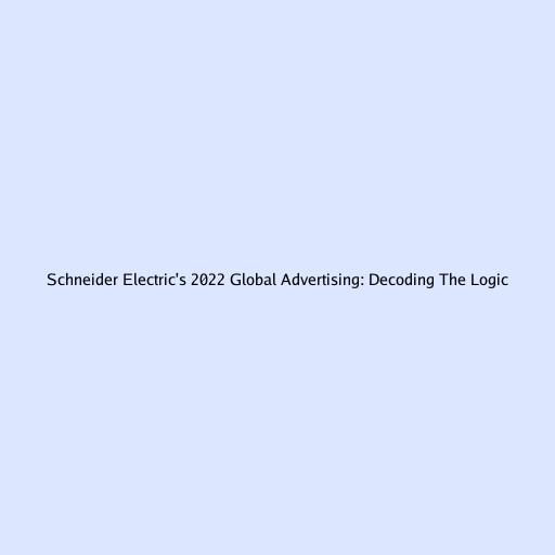 Schneider Electric's 2022 Global Advertising: Decoding The Logic