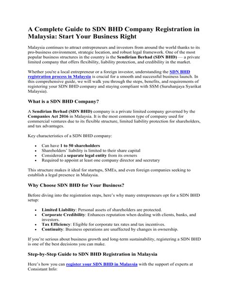 Setting up a Sdn Bhd in Malaysia can seem daunting, but don’t worry, guys! This comprehensive guide will walk you through everything you need to know. From understanding what a Sdn Bhd actually is, to the step-by-step process of registering one, and even touching on the legal and financial responsibilities that come with it, we’ve got you covered. Think of this as your friendly handbook to navigating the world of private limited companies in Malaysia. So, let’s dive in and make this whole process a lot less intimidating, shall we?