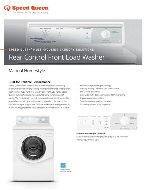 Beyond just being tough, Speed Queen washers are also designed to deliver an exceptional clean. They don’t just tumble your clothes around; they actively work to remove stains and dirt effectively. One of the key reasons for their superior cleaning performance is their gentle yet thorough wash action . Unlike some machines that rely on harsh chemicals or aggressive cycles, Speed Queen washers often utilize deep fill options and multi-speed combinations that allow for a more effective saturation of the fabric and better agitation. This means that dirt and grime are lifted away more efficiently, leading to cleaner clothes without excessive wear and tear on your garments. For those who deal with tough stains or just want that extra level of clean, Speed Queen offers pre-programmed cycles that are specifically designed for different types of fabrics and soil levels. You’ll find cycles for delicates, heavy-duty loads, bulky items, and quick washes, all optimized for performance. Furthermore, the powerful spin speeds extract more water from your clothes, significantly reducing drying time. This not only saves energy (as your dryer runs for less time) but also means you can get your laundry done faster. The intuitive controls on most Speed Queen models make it easy to select the right cycle for your needs, ensuring you get the best results without any guesswork. Many models also feature larger capacities , meaning you can wash more clothes at once, saving you time and energy. This combination of effective agitation, optimized cycles, efficient water extraction, and user-friendly design makes Speed Queen washers a top choice for anyone who values a truly clean laundry outcome. They strike a perfect balance between being gentle on your clothes and tough on dirt, giving you the best of both worlds. The advanced technology incorporated into their wash systems ensures that even heavily soiled items come out looking and feeling fresh. It’s this consistent, high-quality cleaning that makes owning a Speed Queen a truly satisfying experience.