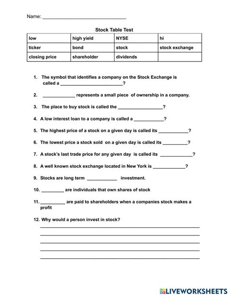 Alright, let’s dive into the nitty-gritty of what you’ll find in stock market worksheets when you’re just starting out. The very first thing you’ll likely encounter is the fundamental definition of a stock. Worksheets will often have you define what a stock is in your own words, maybe even asking you to compare it to owning a tiny piece of a company. You’ll probably see exercises on understanding market capitalization , which is basically how big a company is in the eyes of the stock market. This usually involves simple calculations: stock price multiplied by the number of outstanding shares. Sounds basic, but grasping this helps you understand why some companies are considered ‘blue chips’ and others are smaller, perhaps riskier, plays. Another huge concept covered is supply and demand in the stock market . You might get scenarios where you have to predict if a stock price will go up or down based on whether more people want to buy it (demand) or sell it (supply). Think about it: if a company announces amazing news, like a revolutionary new product, tons of people will want to buy its stock, driving the price up. Conversely, bad news can cause a sell-off, increasing supply and dropping the price. Worksheets will often have you analyze hypothetical news events and mark how they might affect stock prices on a scale or by drawing arrows. You’ll also likely tackle dividends . These are like a company sharing its profits with its shareholders. Worksheets might ask you to calculate how much dividend income you’d receive based on the number of shares you own and the dividend per share amount. It’s a great way to understand how you can earn money from stocks not just through price appreciation, but also through regular income. Honestly, guys, these foundational concepts are the building blocks for everything else, and worksheets make sure you don’t miss any of the crucial first steps.