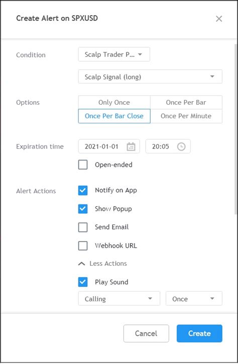 Once you’ve configured all the settings, tap the “Create” button. Voila! Your alert is now active. TradingView will monitor the market conditions and notify you as soon as your specified criteria are met. You can manage and modify your alerts at any time from the “Alerts” panel.