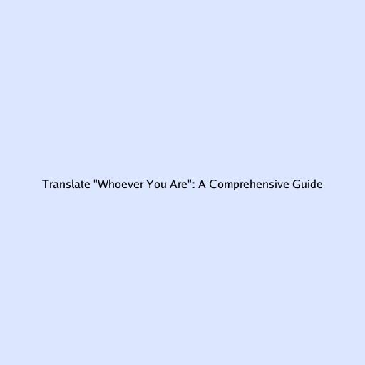 Translate “Whoever You Are”: A Comprehensive Guide