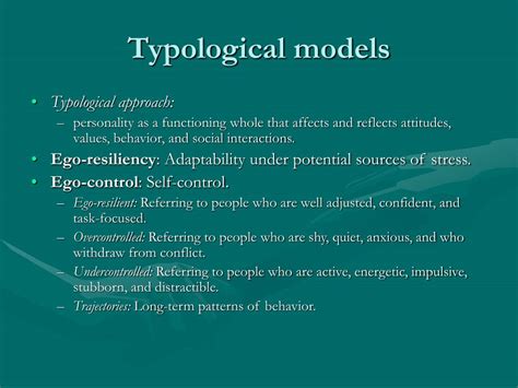 3. Dalam Psikologi : Dalam psikologi, typological model dapat digunakan untuk mengidentifikasi berbagai tipe kepribadian berdasarkan ciri-ciri perilaku dan kognitif yang berbeda. Misalnya, seseorang dapat diklasifikasikan sebagai introvert atau ekstrovert berdasarkan preferensi mereka terhadap interaksi sosial dan stimulasi. Setiap tipe kepribadian memiliki karakteristik yang berbeda dalam hal cara mereka berpikir, merasa, dan berperilaku. Dengan mengklasifikasikan orang ke dalam tipe-tipe kepribadian yang berbeda, para psikolog dapat memahami bagaimana kepribadian memengaruhi perilaku dan kesehatan mental. Typological model juga dapat digunakan untuk mengembangkan intervensi yang lebih efektif untuk mengatasi masalah psikologis. Contohnya, orang dengan tipe kepribadian tertentu mungkin lebih rentan terhadap gangguan kecemasan atau depresi, dan intervensi yang dirancang khusus untuk tipe kepribadian mereka mungkin lebih efektif daripada intervensi yang umum. Selain itu, typological model juga dapat digunakan untuk membantu orang memahami diri mereka sendiri dan orang lain dengan lebih baik. Dengan memahami tipe kepribadian mereka sendiri dan orang lain, mereka dapat membangun hubungan yang lebih sehat dan efektif.