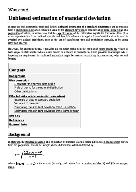 Hey guys! Let’s dive into the world of statistics and talk about something super important: unbiased estimation of standard deviation . You might be wondering, “What’s the big deal?” Well, when we’re trying to understand how spread out a set of data is, we use standard deviation. But here’s the catch: the way we usually calculate it can sometimes give us a slightly biased view, especially when we’re working with smaller samples. So, buckle up as we explore what unbiased estimation means, why it matters, and how to do it right!