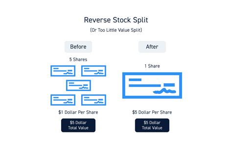 Let’s get into the nitty-gritty of how a 5-for-1 reverse stock split actually works. It’s a bit of a mathematical adjustment, but don’t let that scare you, guys. When a company announces a 5-for-1 reverse stock split, it means that for every five shares you currently hold, you’ll receive one new share. So, if you owned 100 shares before the split, you’d end up with 20 shares afterward (100 divided by 5). Now, the crucial part is that the total value of your investment should, in theory, remain the same immediately after the split. If your 100 shares were trading at \(1 each, totaling \) 100, then your new 20 shares would ideally be trading at \(5 each, still totaling \) 100. The market capitalization of the company – the total value of all its outstanding shares – also remains unchanged. The number of outstanding shares decreases by a factor of five, and the price per share increases by a factor of five. It’s a purely cosmetic change in terms of the number of shares and their price, but it can have significant implications for how the stock is perceived and traded. The company’s board of directors typically authorizes a reverse stock split, and it often requires shareholder approval, especially if it involves amending the company’s charter. After the split is executed, the company’s stock symbol usually remains the same, but a temporary notation might be added to indicate that a split has occurred. For shareholders, the process is usually seamless. Brokerages automatically adjust the number of shares in your account, and the cost basis per share is also adjusted to reflect the split. So, if your original cost basis was \(0.50 per share, after a 5-for-1 reverse split, your new cost basis would be \) 2.50 per share ($0.50 x 5). It’s important to keep track of these adjustments for tax purposes. While the immediate value is preserved, the market’s reaction post-split can influence the stock’s performance going forward. If the market perceives the split positively, as a sign of strength or a move towards profitability, the stock price might continue to rise. Conversely, if it’s seen as a desperate measure, the price could continue to fall. It’s all about perception and the underlying fundamentals of the company.