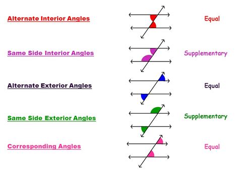 Understanding these distinct types of angles and their relationships is your golden ticket to solving a whole bunch of geometry problems involving transversals. Remember, the key condition that unlocks many of these angle equalities is parallel lines . Keep that in mind as we move forward!