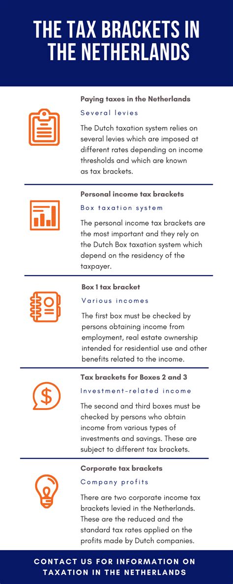 The specific rates for each bracket can vary, but they generally follow a progressive structure, with higher incomes being taxed at higher percentages. To find the precise figures for the current year, always refer to the official website of the Belastingdienst . They provide detailed tables outlining the income thresholds and corresponding tax rates for each bracket. Staying updated on these figures is crucial for accurate tax planning and for understanding your financial obligations in the Netherlands. This knowledge empowers you to make informed decisions about your income, savings, and investments, ensuring that you are compliant with Dutch tax laws and regulations. So, make it a habit to check the latest tax bracket information each year to stay on top of your tax responsibilities.