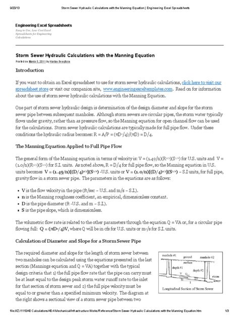 Hey guys! Ever wrestled with calculating flow in open channels or pipes? It can be a real headache, right? Well, today we’re diving into a super handy tool that can make your life a whole lot easier: the Manning Equation Calculator in Excel . We’re talking about a complete guide, showing you how to set up this powerful spreadsheet, understand the Manning equation , and solve real-world problems. Whether you’re a civil engineer, a student, or just a curious individual, this guide will equip you with the knowledge and tools to confidently tackle hydraulic calculations. Get ready to ditch the complicated formulas and embrace the simplicity of Excel! We’ll explore everything from the basics of the Manning equation to practical examples and troubleshooting tips. So, grab your Excel spreadsheets and let’s get started on this exciting journey into the world of hydraulics!