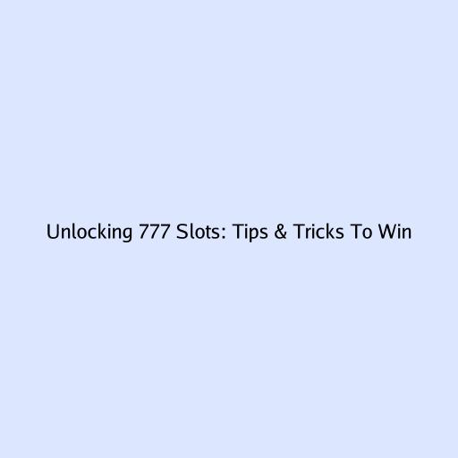 Unlocking 777 Slots: Tips & Tricks To Win