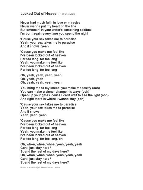 Hey music lovers! Ever found yourself completely hooked on a song, feeling its vibe but maybe not fully understanding what it’s all about? Well, get ready, because today we’re diving deep into one of Bruno Mars’s biggest hits, “Locked Out of Heaven.” This song isn’t just a catchy tune; it’s a masterpiece filled with layers of meaning, emotional intensity, and undeniable musical brilliance. We’re going to break down the lyrics, the inspiration, and the overall vibe of this iconic track. So, grab your headphones, turn up the volume, and let’s explore the world of “Locked Out of Heaven” together!