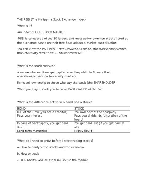 Let’s kick things off with the Philippine Stock Exchange Index , or PSEI for short. Think of the PSEI as the ultimate mood ring for the Philippine stock market . It’s a composite index, meaning it tracks the performance of a select group of companies listed on the Philippine Stock Exchange (PSE). These aren’t just any random companies, though. They’re usually the biggest, most actively traded, and most representative stocks in the market. So, when you see the PSEI moving up, it generally means the overall market is doing well. If it’s heading south, well, the market’s probably having a bit of a tough day. It’s like the headline news for Philippine businesses . The PSEI is calculated based on the market capitalization of its constituent companies, adjusted for free floats. This means bigger companies with more shares available for public trading have a greater impact on the index’s movement. It’s a crucial tool for investors, analysts, and even policymakers to gauge the health and direction of the Philippine economy . For anyone interested in investing in the Philippines, keeping an eye on the PSEI is absolutely essential . It gives you a quick snapshot of how things are going without having to dig into every single stock. Imagine trying to understand the overall vibe of a party by asking every single person how they’re feeling – exhausting, right? The PSEI does that for you, efficiently summarizing the collective sentiment of the market. It’s made up of 30 companies selected from the main board of the PSE, covering various sectors like financials, industrials, holdings, property, services, and mining/oil . The selection criteria are pretty strict, ensuring that the index truly reflects the broader market trends . So, when you hear about the PSEI making gains or experiencing a downturn, you’re essentially getting a report card on how the Philippine corporate landscape is performing. It’s not just about numbers; it’s about the confidence investors have in the country’s economic future . A rising PSEI often signals positive investor sentiment, attracting more capital and potentially boosting economic growth. Conversely, a declining PSEI might indicate caution or concern among investors, leading to reduced investment and potentially slowing economic activity. It’s a dynamic indicator , constantly reacting to economic news, corporate earnings reports, and global market events. So, next time you see a headline about the PSEI, you’ll know it’s far more than just a stock ticker; it’s a vital barometer of the Philippines’ economic pulse . It’s a foundational piece of knowledge for anyone dipping their toes into the waters of Philippine finance and investment.