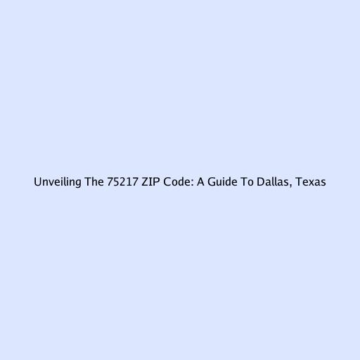 Unveiling the 75217 ZIP Code: A Guide to Dallas, Texas