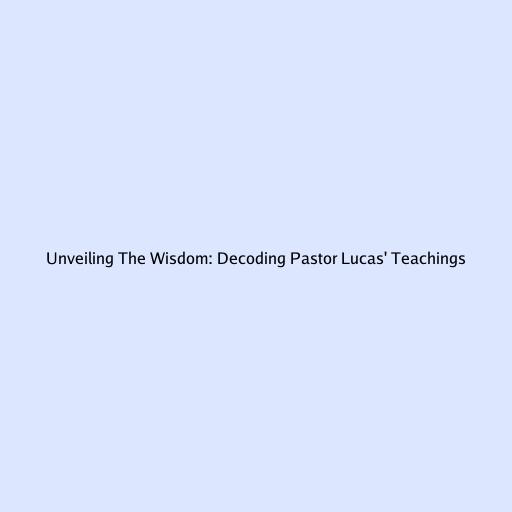 Unveiling The Wisdom: Decoding Pastor Lucas' Teachings