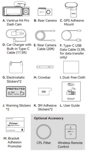 Having all these items ready will prevent interruptions and ensure a more efficient installation. Consider organizing your tools and accessories in a convenient location so you can easily access them as needed. This preparation will not only save you time but also reduce the likelihood of damaging your vehicle’s interior or the dash cam itself. Proper planning and preparation are key to a successful dash cam installation , ensuring that you can enjoy the benefits of your new device without any unnecessary hassle. Before starting, take a moment to familiarize yourself with the Vantrue N4 Pro’s components and the included instructions to gain a better understanding of the installation process. This will help you avoid any potential mistakes and ensure that you install the dash cam correctly and safely.