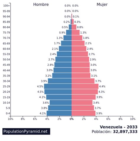 Alright, before we get into the specifics of Venezuela, let’s quickly review what a population pyramid actually is . Imagine a graph with two sides, one for males and one for females. The horizontal axis usually shows the population size or percentage, and the vertical axis represents age groups, typically in five-year intervals (e.g., 0-4, 5-9, 10-14). The shape of the pyramid gives us key insights. A wide base often suggests high birth rates, while a narrow top might indicate lower life expectancy or emigration among older age groups. The shape can tell stories about the country’s history, from past wars and epidemics to periods of economic growth or decline. Also, it’s not just a static image; it’s a dynamic representation. It changes over time as birth rates, death rates, and migration patterns shift. Analyzing these changes gives demographers and policymakers valuable information. They can make informed decisions about healthcare, education, social security, and economic planning. Pretty cool, right? In essence, a population pyramid acts as a demographic fingerprint, providing crucial details about a nation’s structure and trajectory. So, every time you see one, remember, you’re looking at a story in data form.