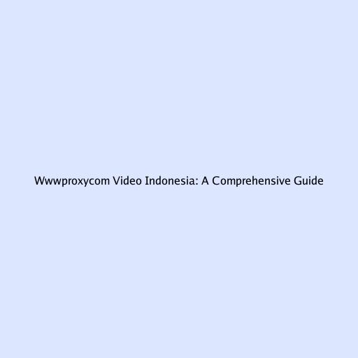 Wwwproxycom Video Indonesia: A Comprehensive Guide
