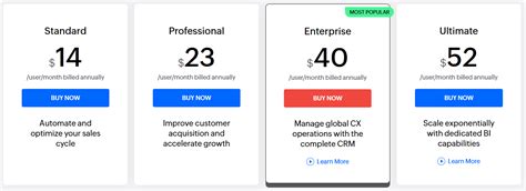 For large enterprises with complex needs, the Enterprise plan is the cream of the crop. This plan is packed with all the features you could ever need, providing a comprehensive and customizable CRM solution. It includes all the features of the Professional plan, along with advanced customization options, dedicated support, and even more automation capabilities. You get features like advanced customization options, unlimited custom modules, and advanced reporting. The Enterprise plan is designed to handle the most complex business processes. It provides you with the tools you need to manage your entire customer lifecycle effectively. This plan is ideal for businesses that demand the highest level of performance, security, and scalability. With this plan, you get the ultimate control and flexibility over your CRM system.